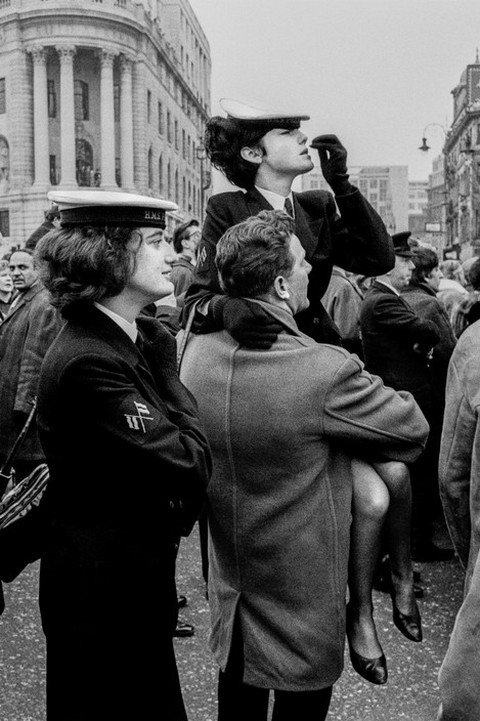 На фотографии был офицер советской армии, покупал жене шляпу в универмаге. Первое послевоенное воспоминание фотографа о собственном отце, когда они всей семьей ходили по магазинам. Отец так же купил его матери шляпу.